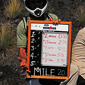 Chris Lieto: On the bike from the get-go, I didn’t have the legs that I normally have. So it may have looked I was according to plan. But I was forcing my power to stay within range. Reading my wattage meter, I thought ‘OK, this is where I am supposed to be.’ I had to keep within that range to stay in contention. So, were my legs feeling bad the first half hour? Would they start feeling better as I was going on? I didn’t know what was going to happen. Sometimes you don’t feel good on the bike and you feel good running. So I stuck to the plan on the bike even though it felt like a lot more effort. But when I got off the bike I could tell right away I didn’t feel good. I tried to push through and suffer through for the first 10 miles and it just killed me. At Ironman, especially in Hawaii, those who don’t give in or give up are the ones who have good races. But there is a distinction between giving up mentally and surrendering physically. At that point, I could not go any more.