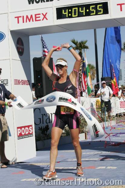 An elated Joanna Zeiger wins the 2008 Ironman 70.3 world Championships