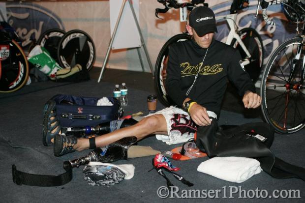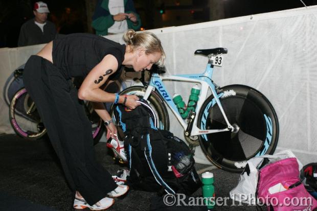 Desiree Ficker gets ready for the race.