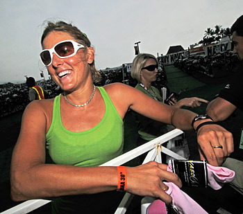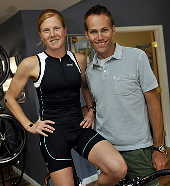 Cut to 2008. In the months after English was cast adrift by USAT, Sam McGlone encountered the first major injury in a decade of English’s coaching. As her Achilles tendinitis increased, her world-best half Ironman form gradually went downhill. Not so bad that she couldn’t win three Ironman 70.3 races. But the woman who routinely ran half marathons at 1:18 pace in 2007 was gritting her teeth through a 1:24 that left her third at Vineman 70.3 in July. Finally, with a month to go before her much anticipated return bout with Wellington at Kona, McGlone’s Achilles deteriorated so badly she could not run and had to withdraw. Sam McGlone and husband watched from the sidelines as Wellington won again, virtually unchallenged.