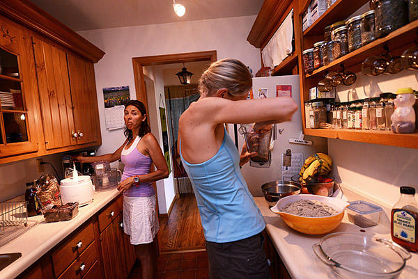 So when Canadian pro triathlete Tenille Hoogland landed on Lopez’ doorstep in Boulder this summer trying to recover from various injuries and an overall feeling of tiredness, theirs was an immediate, happy collaboration. Soon, Hoogland was following Lopez’ regimen of cellular hydration and power packed nutrition with nutrient dense foods she whipped up from organic, holistic groceries easily found in Boulder. Soon, rather than shelling out money for over the counter energy bars, Anita engaged Tenille in a full day in the kitchen “chopping, grinding, rolling, smashing, laughing, learning and eating together” some complex concoctions she calls Bliss Powerballs, Mango-Gogi Energy and Superfood Protein squares that Hoogland considers the perfect food for long rides and runs.