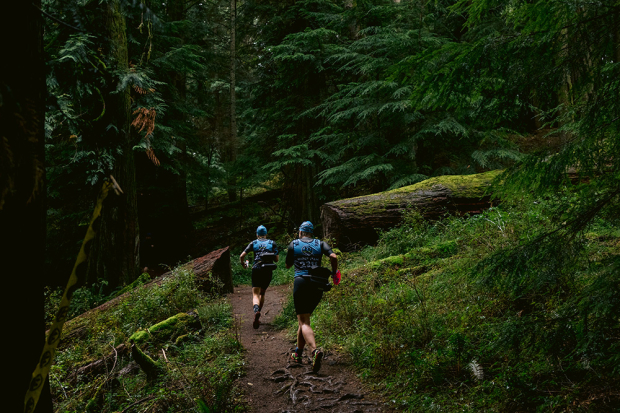 Steve Henn and Doug Roeder of the SFBay Running Otters were maybe ready to encounter some fairytale creatures in this lush green magical forest, but pushed on to finish 15th overall.