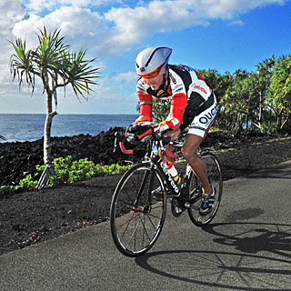 Both his current (not the 1996 model) $280 beach cruiser and his very modern, cutting edge bike sit comfortably together in his Kailua-Kona condo. "My $12,000 bike is a great bike," he says with enthusiasm. "It is almost impossible to even describe the pleasure to even have a piece of equipment like that. For me honestly, I think it is even cooler that I can ride both ends of the spectrum. After I ride the big old bike, I really notice the difference."