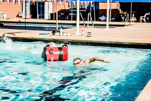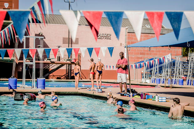 This was an open water session in which we we took the lanes out and dropped in some Powerade coolers as buoys. Worked well, but hurt like hell when you hit them.