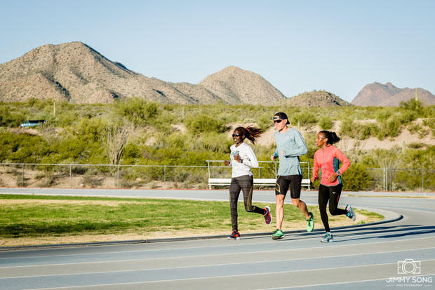 On the inside is Alaphine Tuliamuk and to the outside is Caroline Rotich (2015 women's Boston Marathon winner). They are a couple of the Kenyans that Ryan coaches.