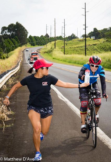 Defending women’s champion Staci Studer of Kailua-Kona Hawaii maintained her third place position with a Day 2 bike split of 9:21:35 which gave her an accumulated time of 19:03:53.