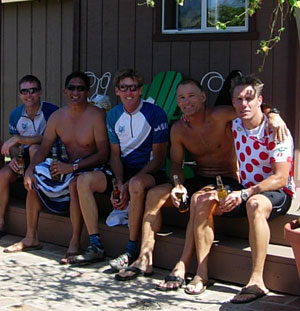 A typical week is three to four 45min swims with Masters, two to three runs for a total of 20 to 35 miles, and three to four rides. Since I don’t have restrictions from the doctor on the bike I compensate for the low running mileage here. In the work week I do all my training on a Cycleops PT300 at 4 am. On the weekend I ride in the mountains and go 70 to 150 miles a day with 4,000 to 15,000 feet of climbing.