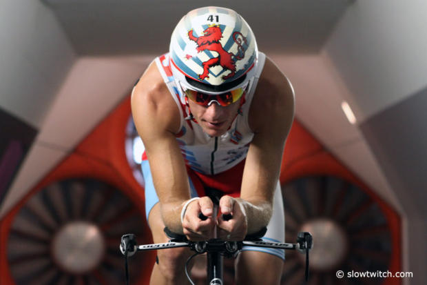 Dirk Bockel finished 8th at the 2010 Ironman World Championships and wants to move up a few more places this year. So tunnel time it is for the Luxembourger. Bockel drove up with a friend from St. Augustin, FL to Moorseville, NC to check out his numbers in the A2 Wind Tunnel. There he met up with the crew from Blue Competition and Mat Steinmetz from Retul and a day of fun was in the making.
