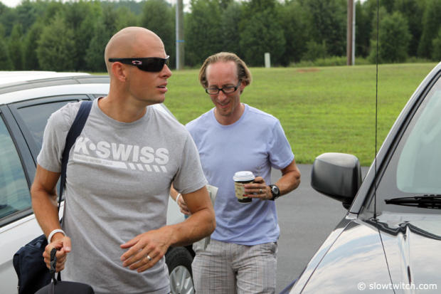 Dirk Bockel arrives with his friend Dave Thorpe at the A2 Wind Tunnel.