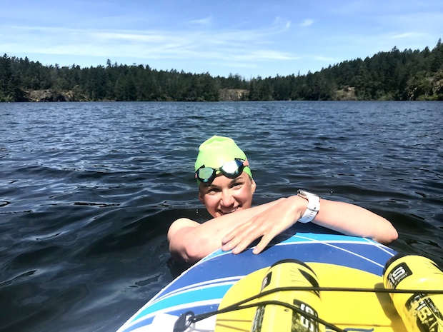 Like anything, becoming more confident in open water takes practice. I am one of those crazy people who swam in lakes for months straight during 2020. Like, I did my entire swim training as normal, just in a lake. I was living in Victoria, British Colombia at the time and there were not one, but multiple, gorgeous, calm lakes to choose from. I’d previously avoided too much open water swimming. Coming from the pool and knowing the pace of every 50, I didn’t like the unknowns around my paces and distances in open water.