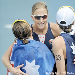 Still, Snowsill ran Beijing as she does all her other races – not with arrogance, but with a humble insecurity. “On the third lap, I definitely thought of (what happened to) Loretta (Harrop, who led the whole way at the Athens Olympic triathlon only to be passed by Kate Allen with 150 yards to go.) It’s a hot day and you definitely feel your energy dwindling. I didn’t want to be seeing things, to be hoping that no one was coming up on me. You don’t always want it to come down to a run race. But today it did. And there’s nothing like running scared from the rest of the field.”