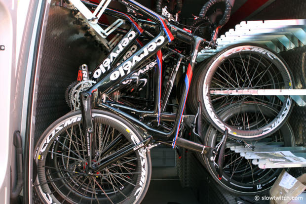 After a busy day of riding the Cervelo S5 and R5 fleet gets packed away.
