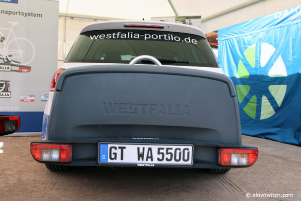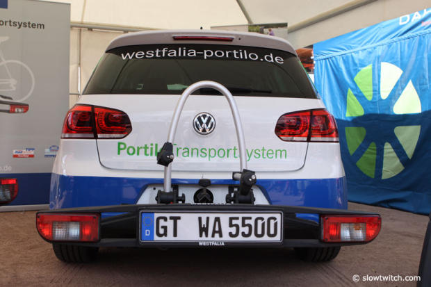 The Westfalia Portilo bike rack can be folded in to a very compact 58cm width, 22cm height x 69cm depth.