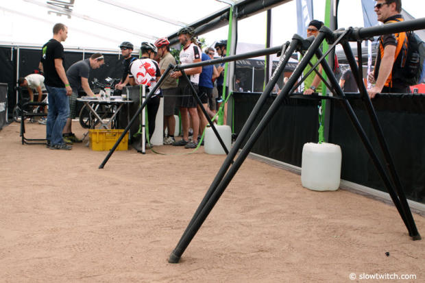Several empty racks in the Cannondale booth and folks are still lining up.