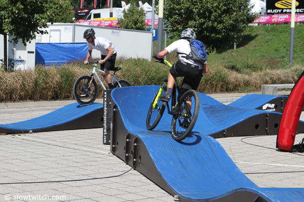 Action on some of the trails outside of the exhibit halls at Eurobike.