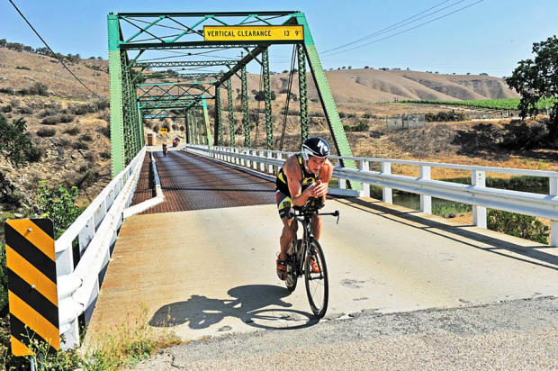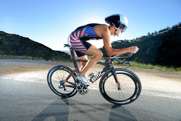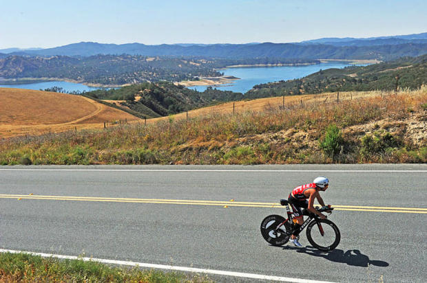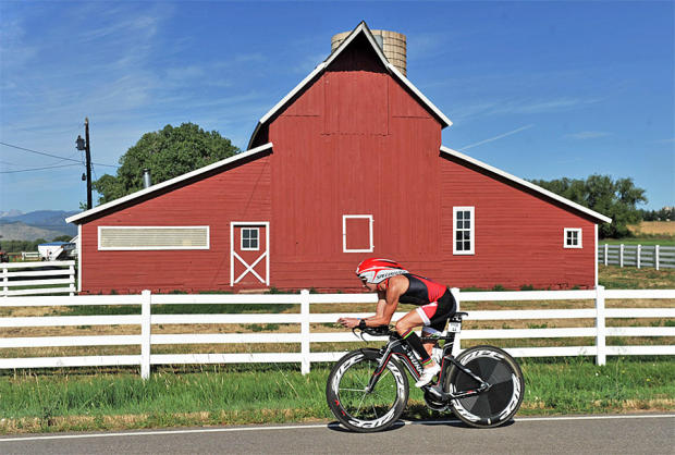 Ironman 70.3 U.S. champion Kevin Collington rides above Boulder on Olde Stage Road.