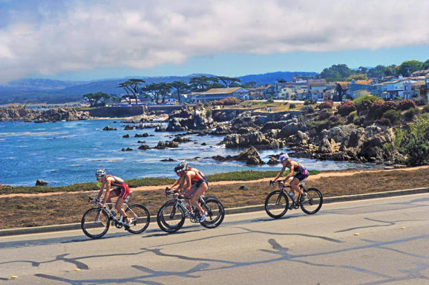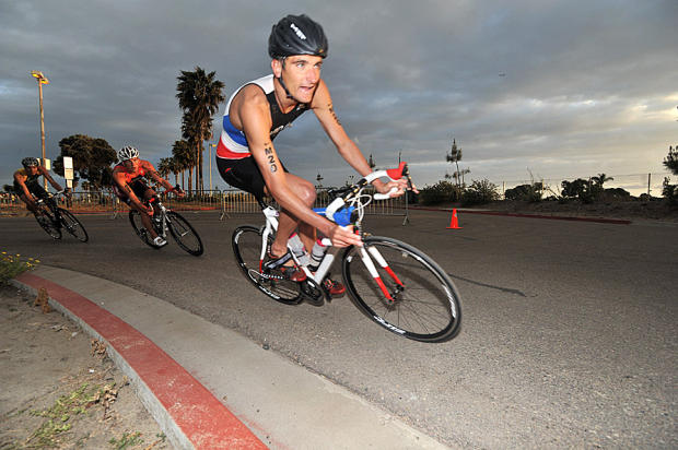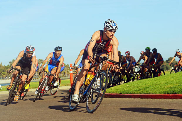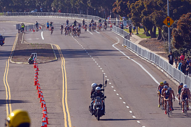 Matt Chrabot leads a pack of riders at the San Diego round of the World Triathlon Series.
