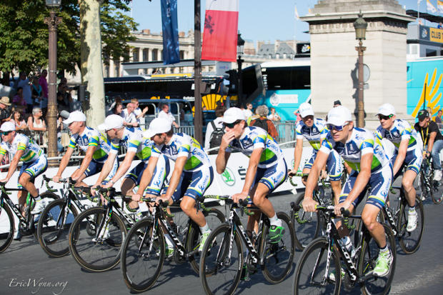 With a break still up the road very late in the final stage Team Sky and Team Liquigas went to the front.