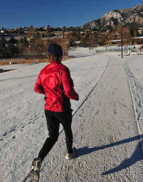 Early in December, she decided to park her bike in the garage and leave her swim suit packed in the gym bag. She called Boulder-based running coach and former marathon world record holder Steve Jones and asked to join his training squad. Soon she was reborn as a humble runner; suiting up for early morning runs in Boulder ice and snow.
