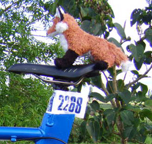 Alan: The Fuzzy Fox is a small stuffed Fox which we give to “award winners” at our end of year party as we decided this would be more meaningful than a trophy. Members also take “FOX FOTOS” of FUZZY FOX all over the place. This year FUZZY FOX has been photographed with Matt Lauer, with Brett Favre, in an F-16, with Mickey Mouse, and all over the world. Speaking of awards, we do something a bit different there. We do not give awards for the normal, like who won the most races etc. For example our ROOKIE OF THE YEAR went to a woman who lost 65 pounds, did her first tri, found love and got married, all in her first season as a TRI FOX! Our members are also given the FUZZY FOX award for things like volunteering, leading a club event, doing behind the scenes work etc.