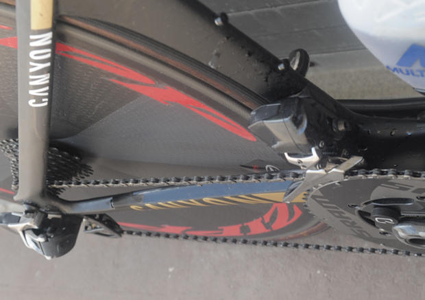 These images were snapped post-race, so, if the bike looks grimy it's not because the German star acts emulates the behavior of the stereotypical triathlete when it comes to cleaning and maintaining his bike (whether or not the stereotype has merit).