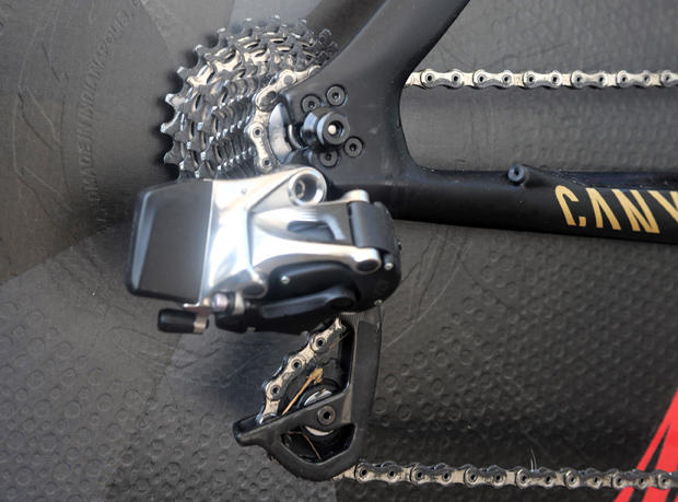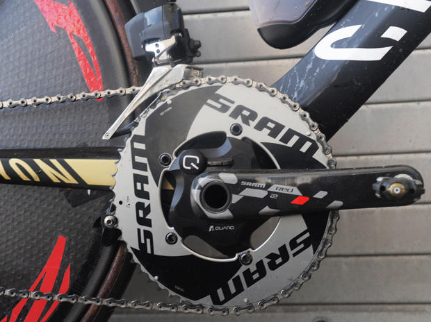 SRAM, America's answer to Shimano and Campagnolo, would rather attention not be placed on this product, because it's not ready to sell or ship, or even show. Hundreds of hours have been ridden on SRAM's electronic system, by very select triathletes like Frodeno and by the AG2R Pro Tour cycling team.