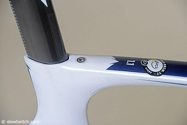 UCI approval sticker – check, and the bolt to fasten the seat posts.