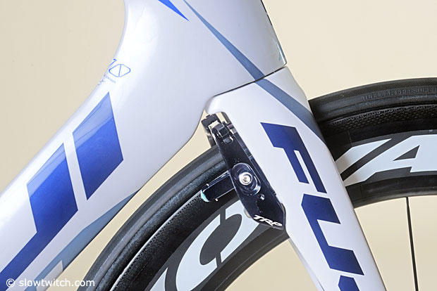 The integrated TRP brakes for the rear are under the chainstays and are wind protected by a shroud.