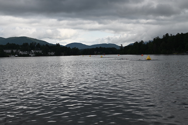 As is custom on Friday, the beach at Mirror Lake proves popular early in the morning. A steady-stream of age-group athletes headed out for a loop of the swim course. Water temperatures here, as of this writing, will prove to be a swimskin swim for professionals, and a wetsuit legal one for all age group athletes. As you can probably tell, like with most of this summer in the northeast, another line of storms rolled through this morning. It should be the last of them prior to race day, and wind directions look favorable so as to not result in any wildfire smoke issues.