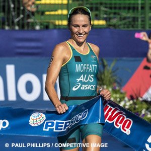 This year Moffatt has been up and down in the prestigious World Triathlon Series events, scoring a 2nd at Yokohama and 3rd at San Diego, then 19th at Kitzbühel and 22nd at Hamburg to place her 8th in the WTS points standings.