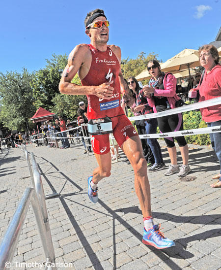 Between 5k and 6k on the run, Gomez pulled up beside the German. "We ran together for a little bit," said Frodeno. "Then he ran away from me.." But there race wasn't over. "Gomez had 30 seconds on me, then I ran it back to 15," said Frodeno. "But that obviously hurt me. I felt a little cramp coming on and I had to back off a little bit. Then I had nothing left."