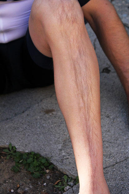 Various patterns were tested but this sharp front stripe had the best numbers and showed significant advantages over clean shaven legs.