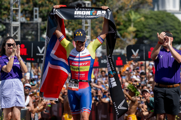 On a record breaking day in Kona, there was the feel of inevitability in the air. Despite Sam Laidlow leading this race from the gun, and having an over three minute lead midway through the marathon, lurking behind him in second and third sat the Norwegian duo of Gustav Iden and Kristian Blummenfelt. It seemed like we would just bide time until one of them would hit the front of the race and wind up claiming their first win in Hawaii. Pre-race, it seemed like Blummenfelt was the favorite, given that he had won the 2021 IRONMAN World Championships in St. George.