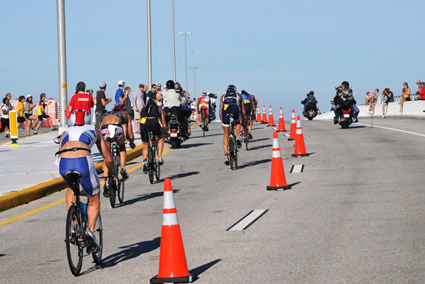 The lead pack stayed in tight but legal formation coming back over the causeway, but 400 yards from T2, a marshal popped an irate Leon Griffin for drafting. Without the four-minute penalty, Griffin theoretically would have been second.
