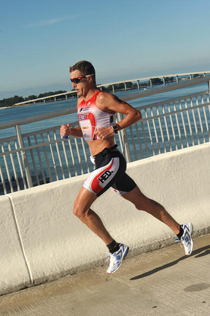 Greg Bennett was he was taking his debut at this year's Foster Grant Ironman 70.3 World Championship as an experiment. A 22:14 swim and a 1:59:07 bike got an A- grade. His 1:20:59 run to 27th place showed that four races in six weeks after his painful collision with a bike in June left him off his best form.