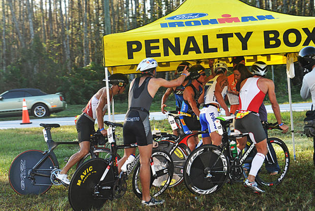 The result of the crowding – several drafting penalties, served in four minute segments in bins on the course.