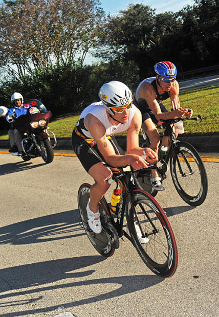 Andrew Starykowicz set a bike course record of 1:58:49, outpacing Joe Gambles by 8 seconds. But Gambles' 1:13:21 run brought him home 5th, while Starykowicz's 1:20:00 left him 24th.