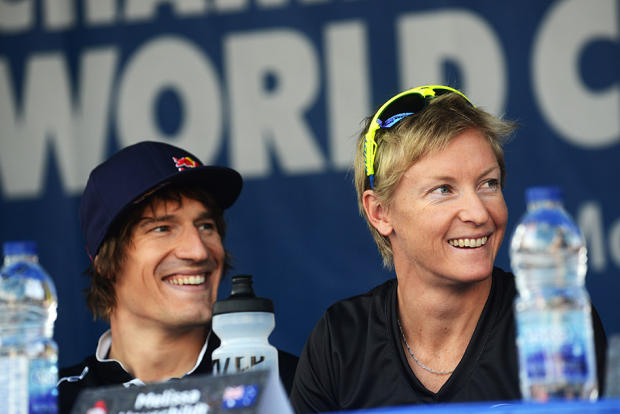 2001 ITU Olympic distance World Champion and current coach Siri Lindley with her athlete Jodie Swallow.