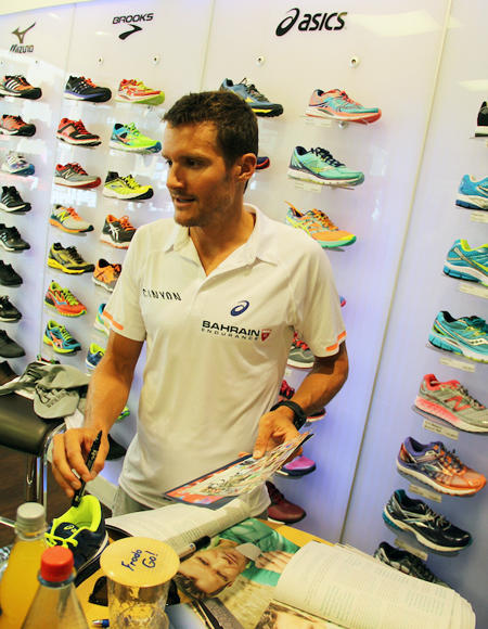 Frodeno meanwhile was a busy man yesterday. In addition to the press conference the talented German also spent time with his sponsor Asics in the Frankfurter Laufshop. He spoke for an hour about his career, training and racing and then answered questions and signed autographs.
