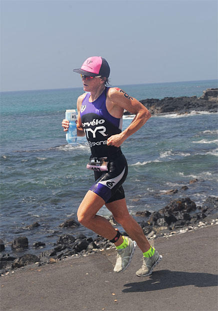 Mary Beth Ellis is capable of a sub-3 hour Ironman marathon, but this day she ran out of energy and posted a 3:33:37 split after this smooth striding early on the run.