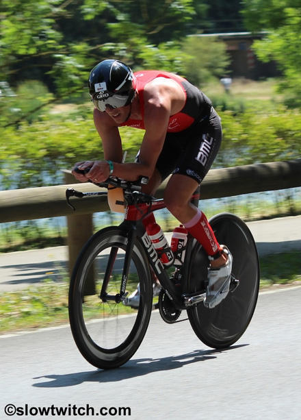 The defending champion Axel Zeebroek had a superb swim and he set the early pace on the bike