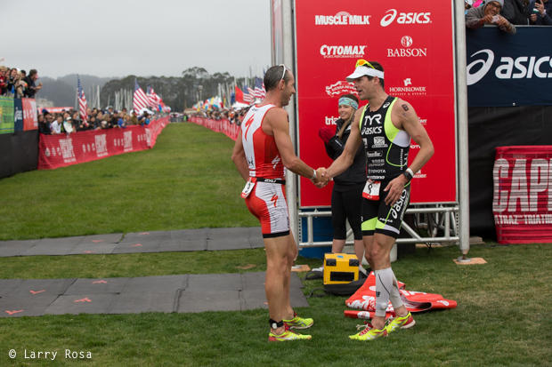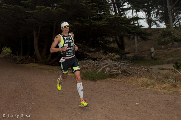 Andy Potts quickly found his running and cycling legs after exiting the water near the famous Alcatraz prison.