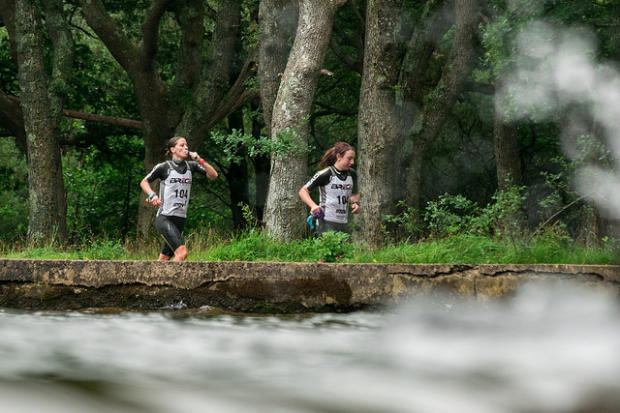 And we go up again. Orna O'Toole and Kirsten Poynter of team Yorkies all smiles on the way to 7th place in the female division.