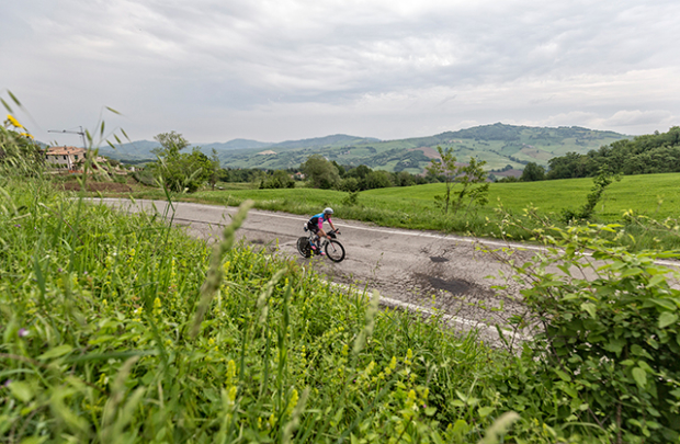 The chasers bunched up on this climb, but Giulio Molinari was out of reach.