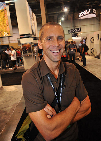 Emilio De Soto welcomes, Vegas style, visitors to his Interbike booth.