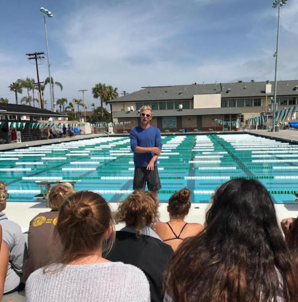 Kanute joined the Coronado High School Swim Team, (Vance is the Head Coach for the team), for their workout, and spoke to the team before practice about the importance of the mental approach to racing. Kanute discussed how he has handled set-backs and disappointments, and how he has persevered for success, what it took from him to make the Olympic Team.