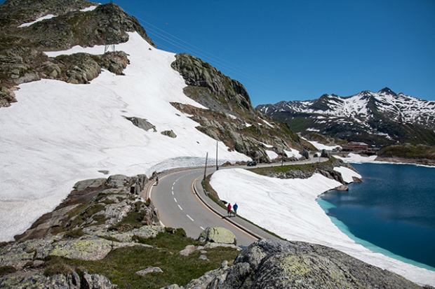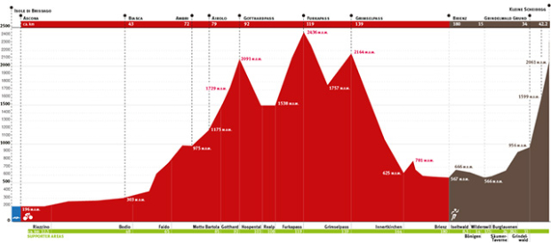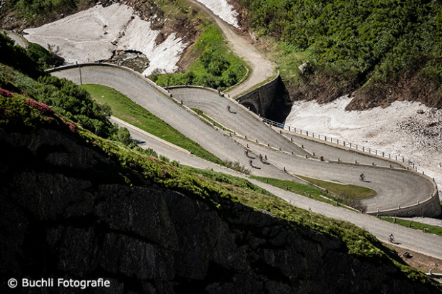 The first big climb the athletes get to conquer is the Gotthard Pass, and that is a very popular cycling climb. Pros and amateurs alike come here to get in shape and test their mettle.