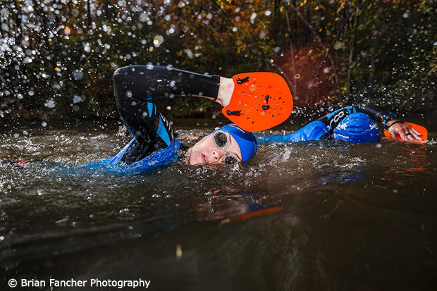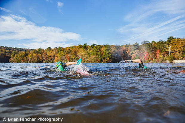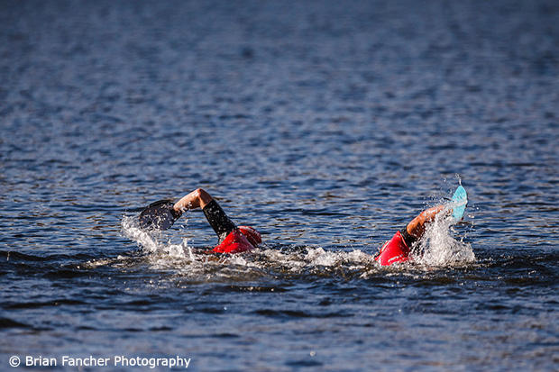 In harmony together across the lake and ready for more swiming, running and swimming.