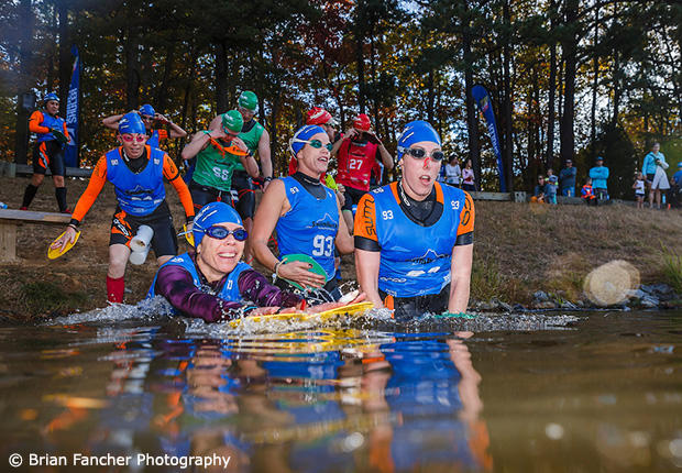 Daniel Lloyd and Daniel Kasberg (team Danwich) from Ohio grabbed the win in the male division in 3:15:23 and Curtis Royek and Riley Smith (Team RAMROD) from Pennsylvania finished 2nd in 3:18:44, but both teams are part of the Naval Academy in Annapolis, MD. North Carolina residents Marcus Barton and Caleb Baity (GU Crew) rounded out the podium in 3:23:04. The mixed division was won by Lawrence Brede and Jaime Brede (Team Tigercub) from NC in 3:43:59. The runner-up team Brant Armentrout and Betsy Armentrout (Have Some) also are from NC and finished in 3:52:21, and third place in the mixed division went to NC residents Amy Krakauer and Marcus Carson (Team MACK Attack) in 4:02:09. The female division was also tightly contested with Misty Becerra from Florida and Sophia Chadwick from Canada (Have We Met?) taking the win in 3:52:37. Second place went to Holly Benner and Mary Kay Krause from Pennsylvania (No Seaweed) in 3:55:51 and third place to Kristen Jeno and Jennifer Perrottet (Sole Sista's) from North Carolina in 3:56:59.