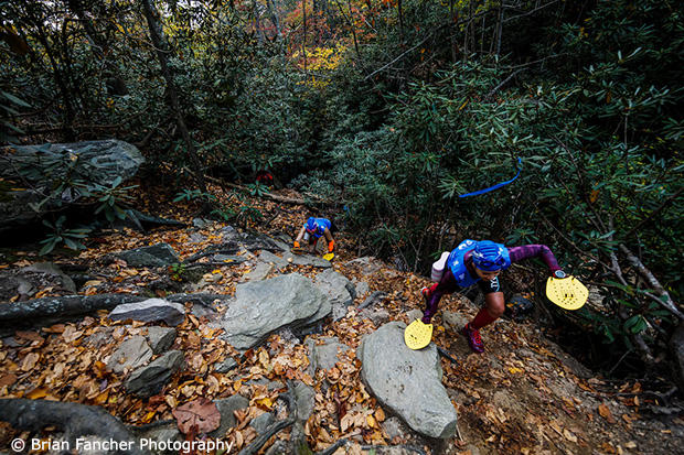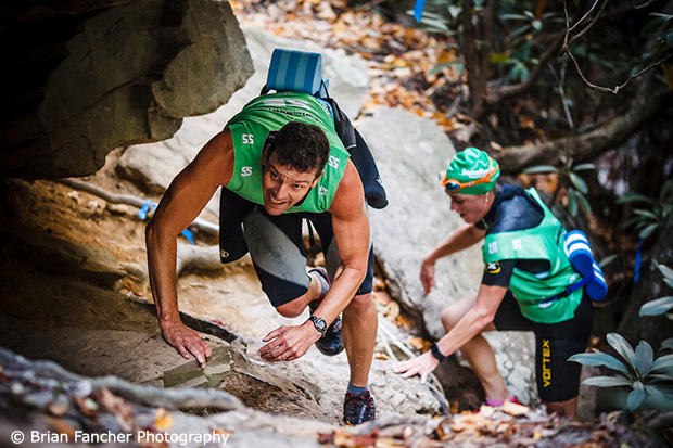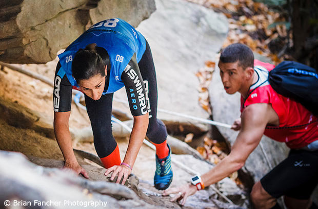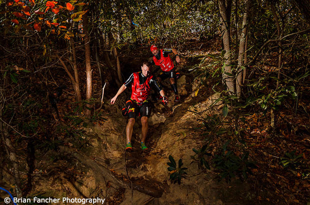 Misty Becerra of the winning Have We Met? team is followed by Keith Davis of team Mutt and Jeff through a challenging section.